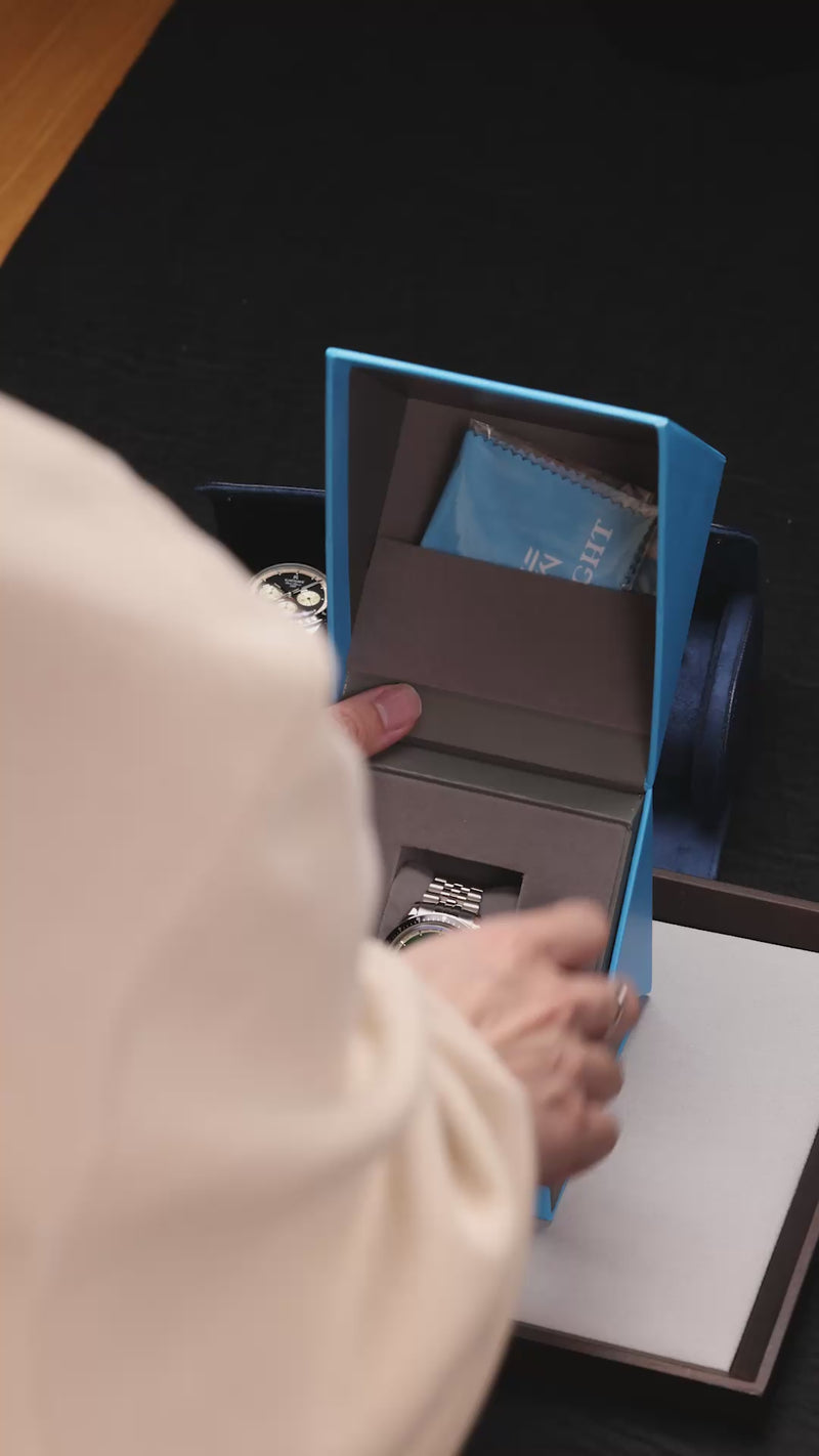 Grand Slammer 1959 channels the golden era of motorsport with a reverse panda look dial, echoing Daytona’s legendary asphalt. Three sub-dials, crafted to reflect vintage racing dashboards, honor the adrenaline of 1950s racing spirits, where speed met sophistication.